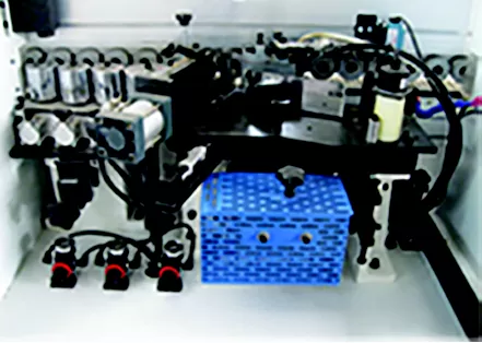 به طور مثال این دستگاه لبه چسبان QUEEN 5 از چهار ایستگاه اتوماتیک تشکیل شده که در طی اجرای این پروسه عملیات چسباندن نوار پی وی سی بر روی قطعه کار به صورت کامل و با کیفیت انجام می پذیرد بدین صورت که ابتدا قطعه کار از ایستگاه چسب عبور کرده و در ایستگاه بعدی توسط اره سر و ته زن دستتگاه اضافات نوار برش می شود و در نهایت در ایستگاه پرداخت کامل با سیستم فرز و ایستگاه پولیش تکمیل می گردد بنابراین می توان گفت که هر قطعه در ایستگاه های لبه چسبان وظیفه منحصر به فردی را دارا هستند.